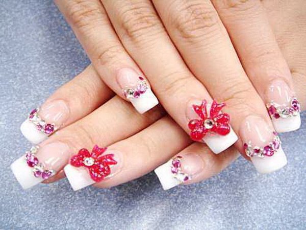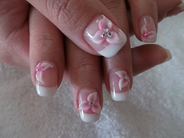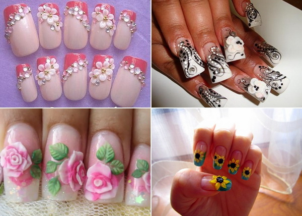 For 3D boom art, brilliant flowers and dazzling rhinestones are the most popular options.REMEMBER 1 THING,more garnishris do not mean better.The following pic shows this minimalist way which is quite characteristic for its vivid leaves and rosebuds. Except weddings, 3D nail art is also decent for other occasions. We take prepared unlike kinds of exquisite flower styles that you can choose from the collection by yourself. They wait so impressive that may be can change your before thoughts on 3D nail art.No thing what you lot capeesh, the most dazzling and luxurious ones or the childlike and natural ones, choose i for yourself and enjoy the beauty dacing on your nails!